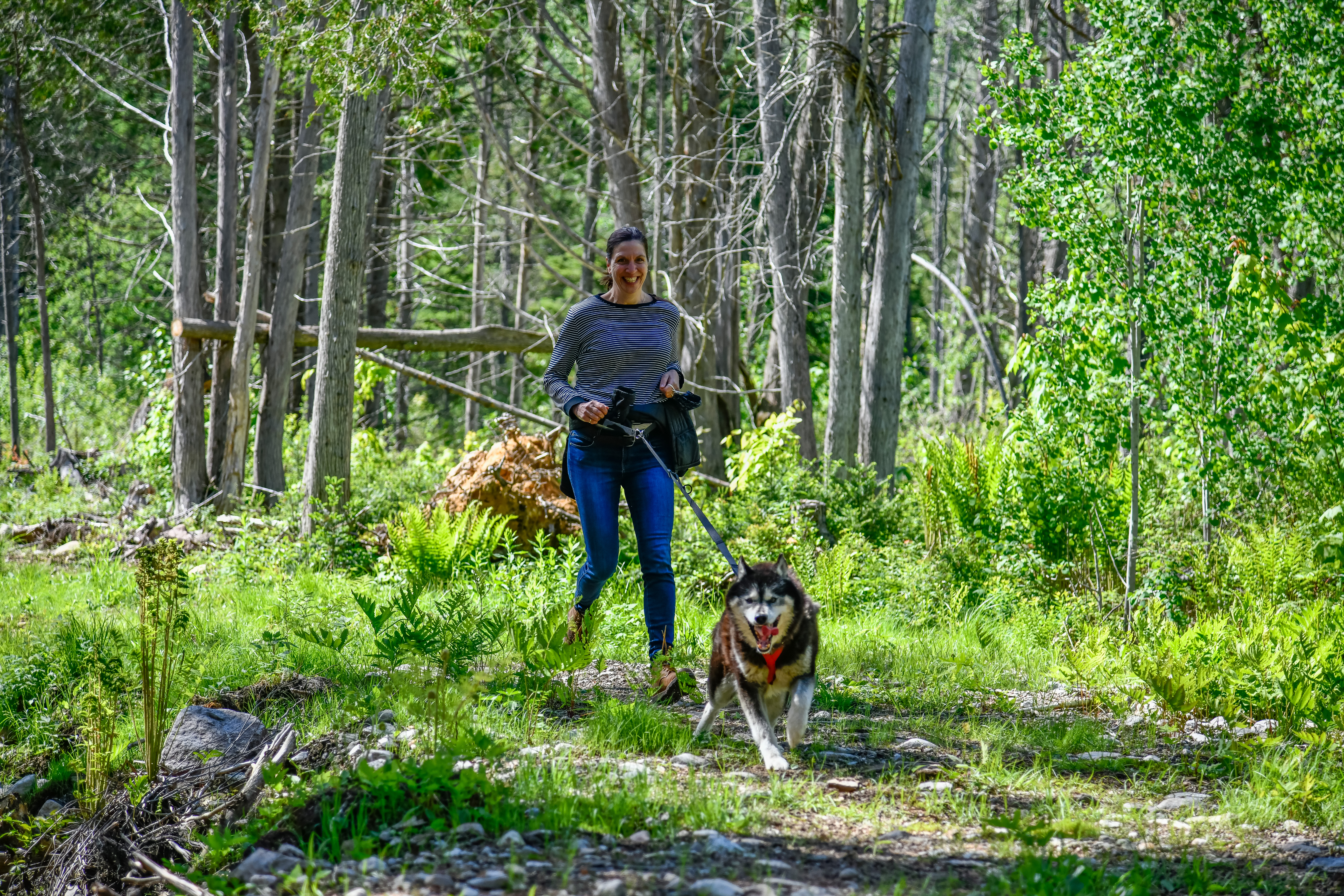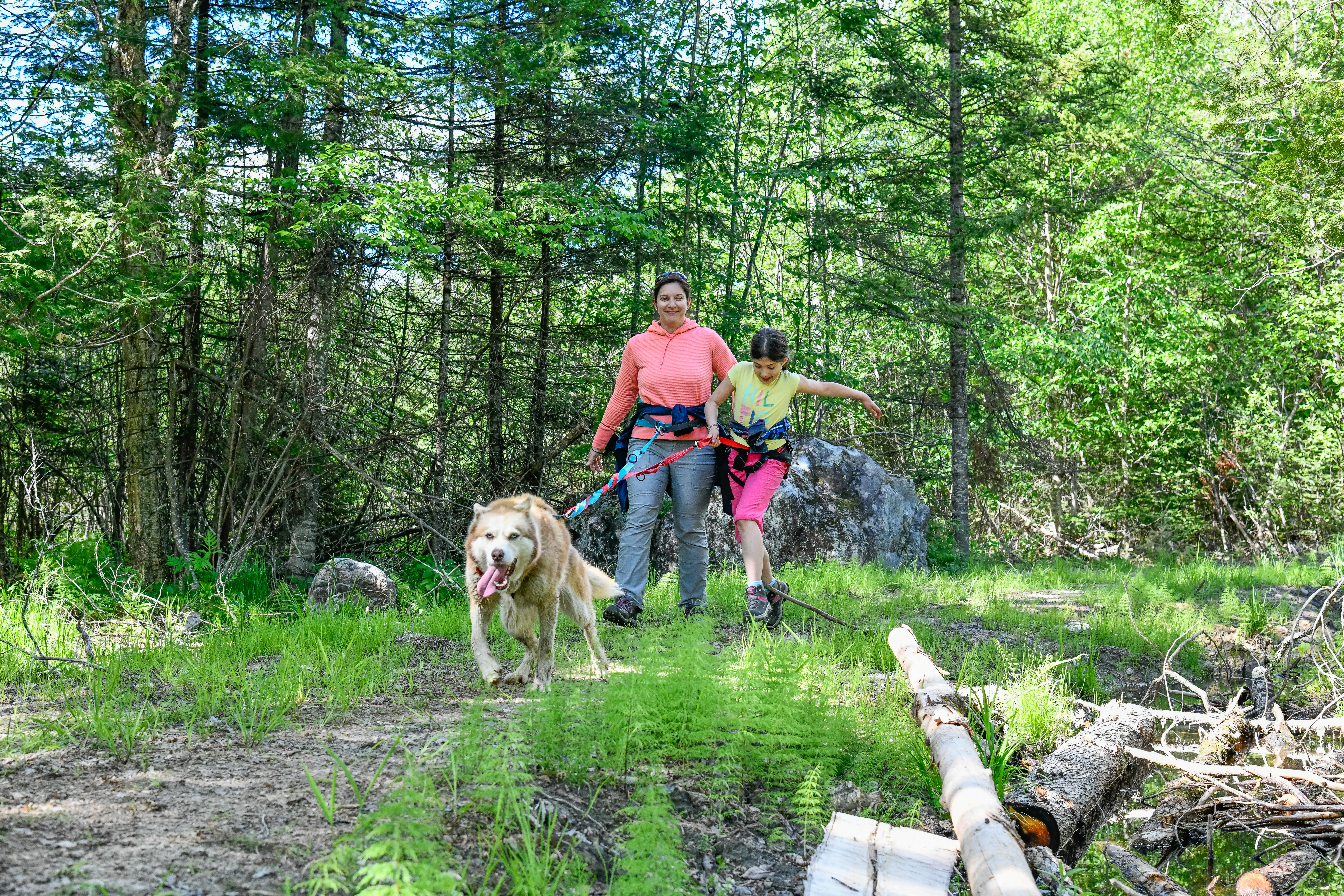 Our new Mont-Tremblant Sled Dog Hiking (cani-hiking) is hiking with a dog walking in front, attached to a waist belt and a long leash. Our adventure is private for you and your group and combines a visit to the pack and a hike in the woods. It’s an easy-intermediate outdoor sport to do with a dog on our nature trails.