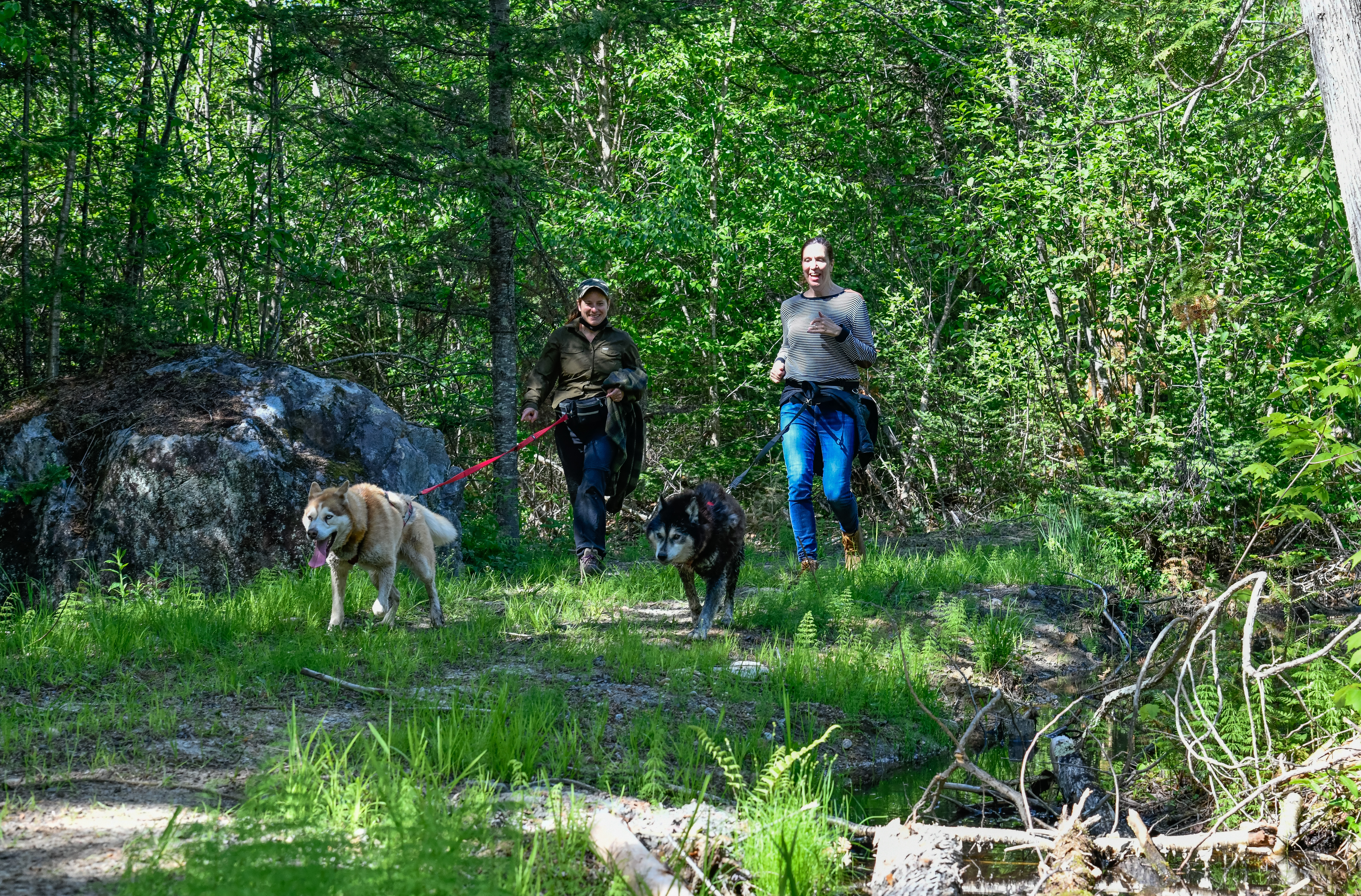 Sled dog hiking or cani-hiking, is a great new way to connect with our sled dogs during the summer!